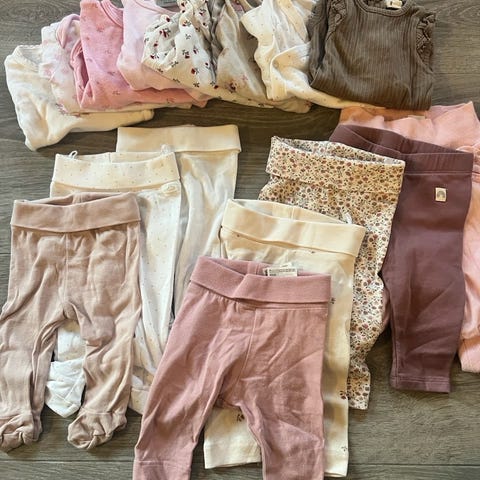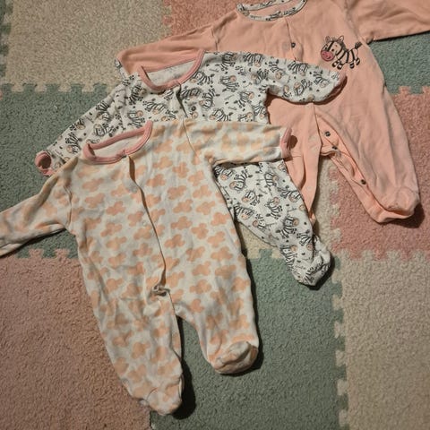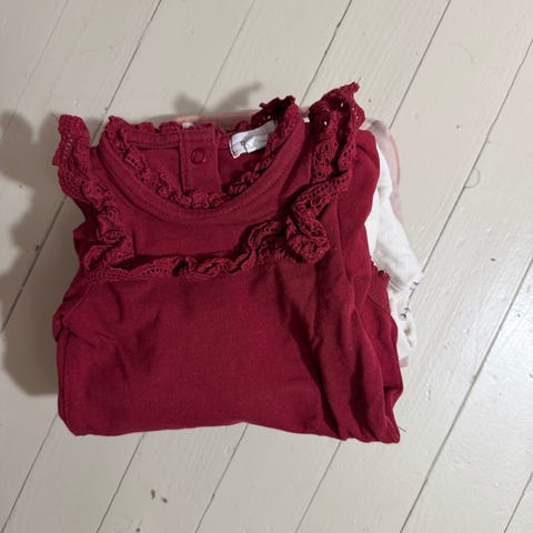 4 pent brukte omslag body til jente uten feil å mangler samt en tykk ullbody i hvit 🤍 str 56 normal og god i størrelse.