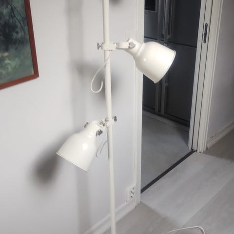 Selger lampe. Eine lampen er limt. Er dimmer på.