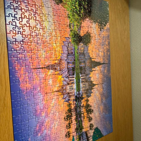 Biltema Puslespill med 500 brikker som viser et bilde av Eiffeltårnet. Puslespillet er laget av kartongmateriale og passer for voksne og ungdom.