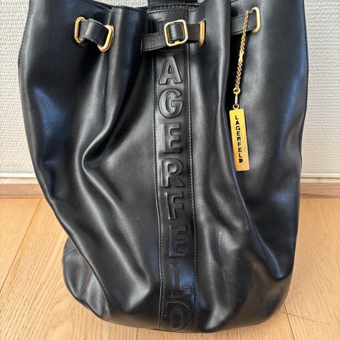 En liten vintage Carl Lagerfeld veske i ekte lær. Ny.