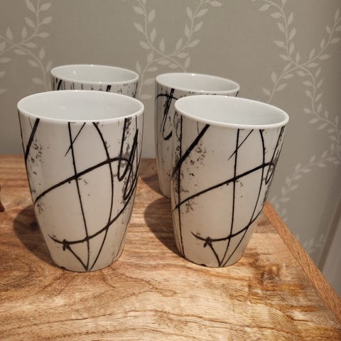 Selger 10 krus fra Porsgrund Partitur. To av krusene er brukt litt, mens 8 er så og si ubrukt og ser helt ny ut.