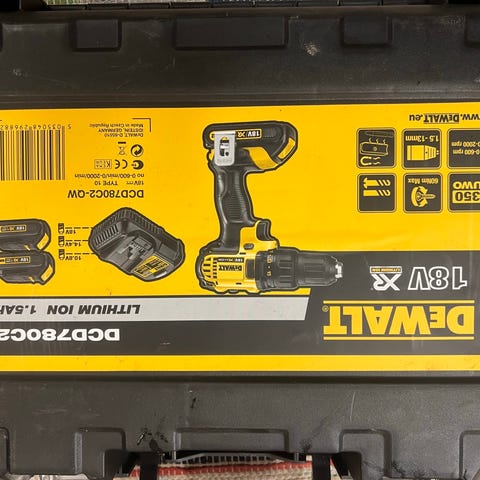 DeWalt verktøykoffert i plast. Hører til drillen dcd800, med plass til batteri og lader i kofferten. Passer også til driller av lignende størrelser som dcd708.