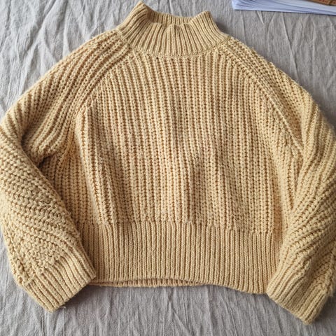 Ny mørkegull genser fra spanske merke , st. L, den er 49cm lang og ca 61cm vid i bryste