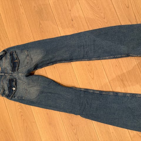 Gina Tricot Zanna jeans i blå denim for damer. Jeansene har størrelse 32 og midjevidde W24. Laget av denimmateriale. Selges da jeg aldri har brukt dem!