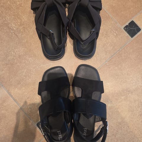 Softwalk Comfort sandaler i svart skinn for dame, størrelse 39. Sandalene har åpen tå og åpen hæl med stropp bak for støtte. Myk såle for komfort ved bruk.