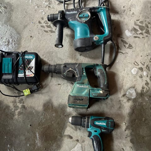 Pent brukt Makita skrutrekker med bitssett, mangler 2 del.