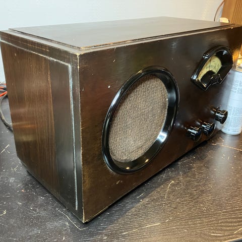 Det er en Radionette NRK folkemotager Den har produsert nummer 29733 og er fra før krigen, og er batteri drevet. Passer kun til samlere og pynt.