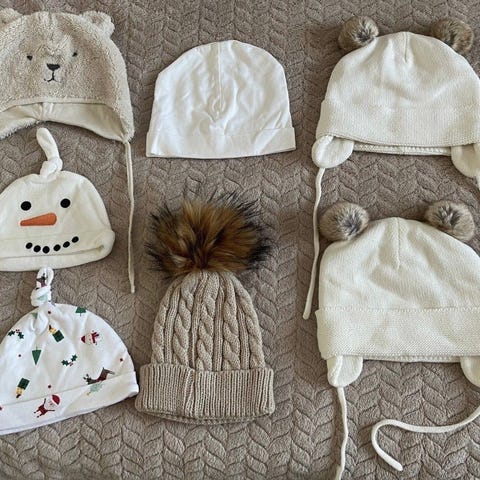 - 1 hvit- og gråstripet lue fra Reflex str 12-24 mnd (50% ull)