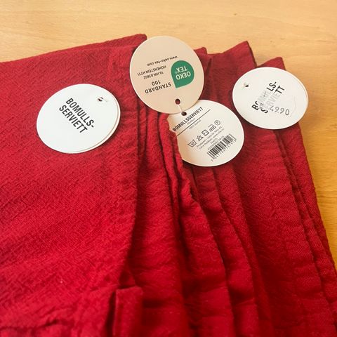 4 julerøde løpere og 2 tilhørende tøyservietter fra Kid. Selges samlet.