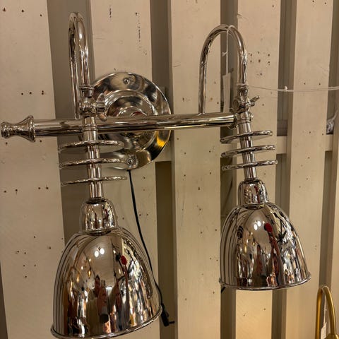 Selger et elegant veggmontert bildelys i krom, brukt over innrammet kunst. Lampen gir jevn og behagelig belysning som fremhever farger og detaljer uten blending.
