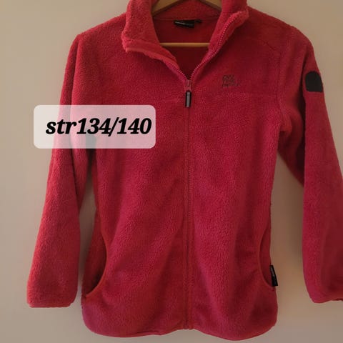 Reflex fleecejakke for barn med størrelse 134 cm. Jakken har en beige farge og kombinerer fleece med vatterte partier foran. Den har glidelås og to lommer med glidelås.