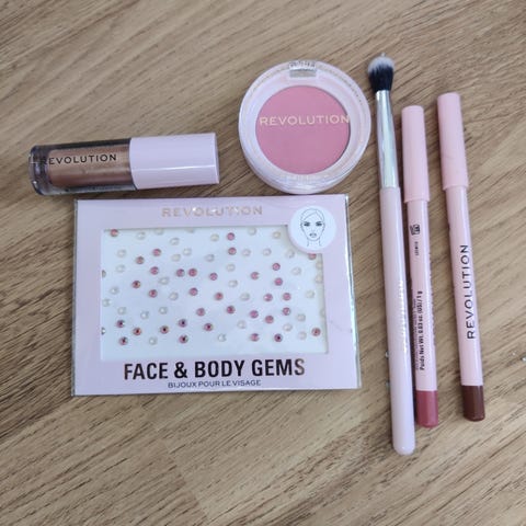 Revolution Lipgloss i to varianter og Balm Glow ansiktsbalm i fargen Golden Hour. Lipglossene har sølvfarget hylster, og Balm Glow er flerbruksbalm for ansiktet med naturlig glød. Produktene er egnet for bruk på lepper og ansikt.