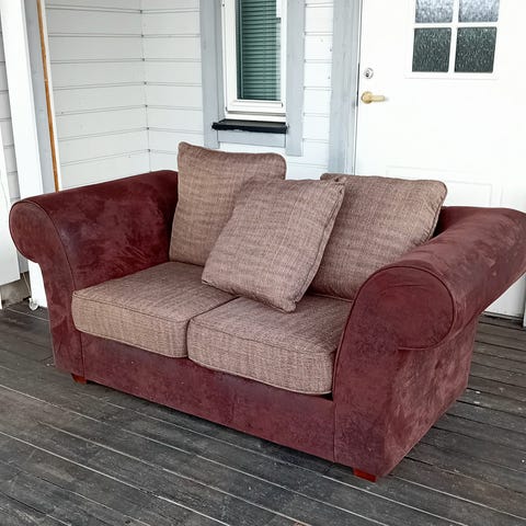 Noen flekker. Ellers så ser den hel ut. Ene puten er nedsunket,