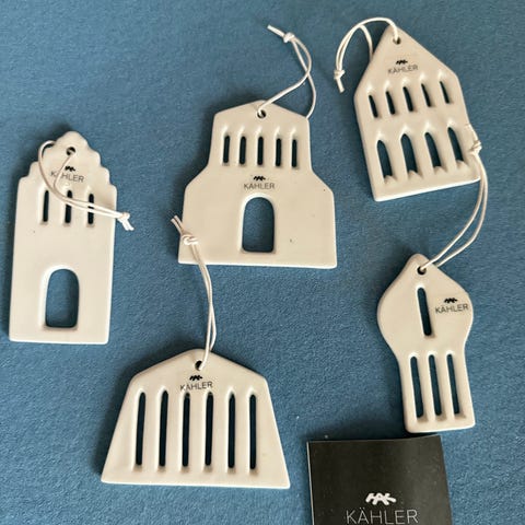 Kähler lysestaker. Jul dekorasjon ornamenter i keramisk materiale. Sett med ulike former og størrelser, egnet for bruk som dekorasjon i julesesongen.