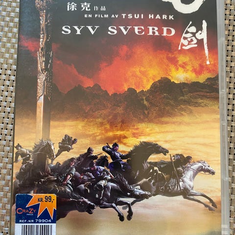 Syv Sverd DVD film med originalt cover. Inneholder filmen Syv Sverd regissert av Tsui Hark. DVD-format med flere språkvalg og undertekster. Passer for samlere og filminteresserte.
