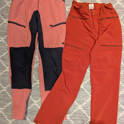 Selger 2 turbukser en i str 36, fra Skogstad, mere rød enn på bilde, og en str 170-174 fra lundhags.