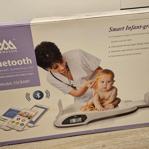 Hold kontroll på vekta til mini med denne. Har målebånd integrert i vekta. Kan kobles mot telefon med bluetooth.