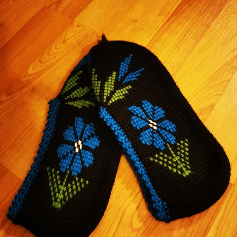 Strikket med tunisisk heklenål. Størrelse: 40-41. Helt nye/ubrukte.