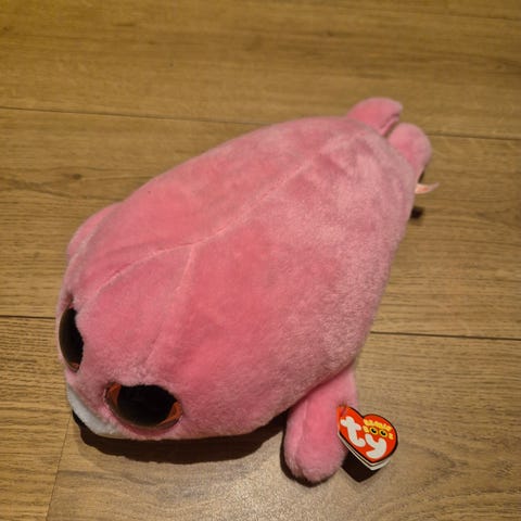 Stor i str, lagt ved A4 ark for sammenligning. Ca over 30cm i lengden og høyden.