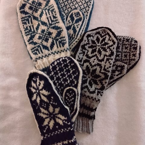 Strikket med tunisisk heklenål. Størrelser: 40-41. Alle er helt nye/ubrukte.