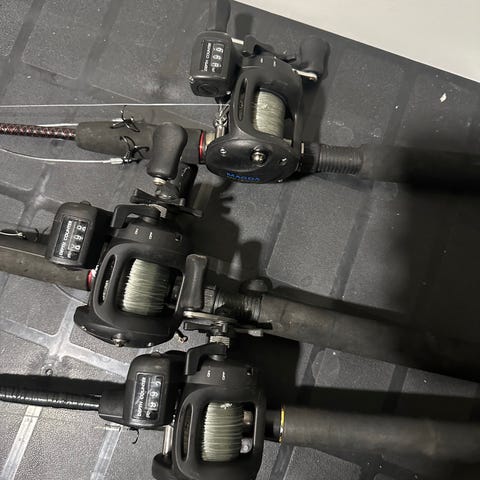 Snella er revo toro beast 61 hs, fylt med multifilament. Det følger med 3 ulike sveiver til snella.