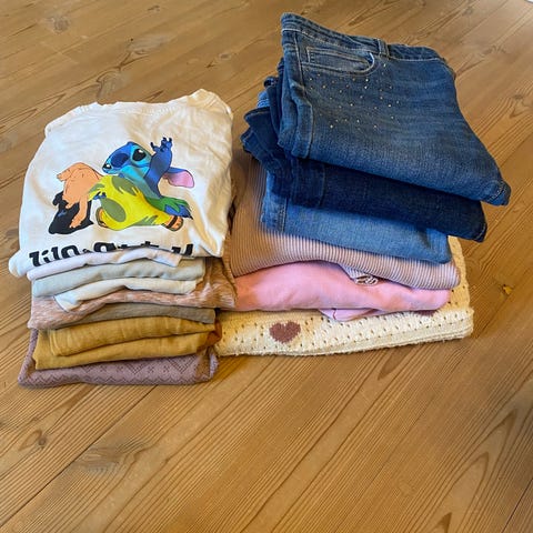 Jenteklær størrelse 134-140. Jeans, bluser, skjorter, gensere, t-skjorter, shorts, treningsdress. Alt er i utmerket stand. Alt selges samlet.