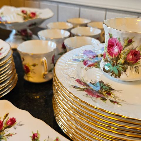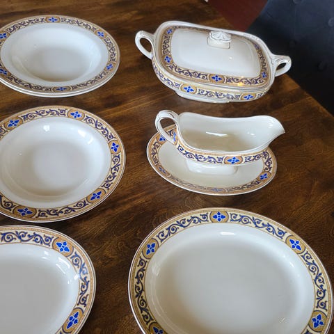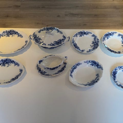 Lekker, klassisk servise , som består av mange deler . Alt som vises på bilder.Den er i topp stand, bortsett krakelerring på noen få av de ( se bilder)