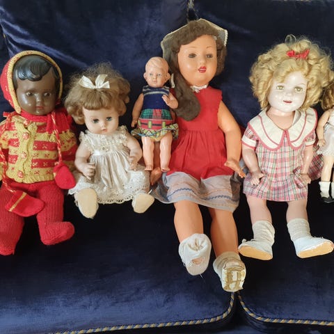 Vintage leker fra 60-tallet selges samlet som vist på bildene. Lekt mye med, feil og mangler forekommer ,- men sjarmerende allikevel. Dukkeservise: 4 asjetter (en med lite nag).3 skåler, 3 kopper, fløte/sukkersett, kaffekanne (knust av meg på 60-tallet, tapet av min far og samme tape sitter på fortsatt). Opphav ukjent.