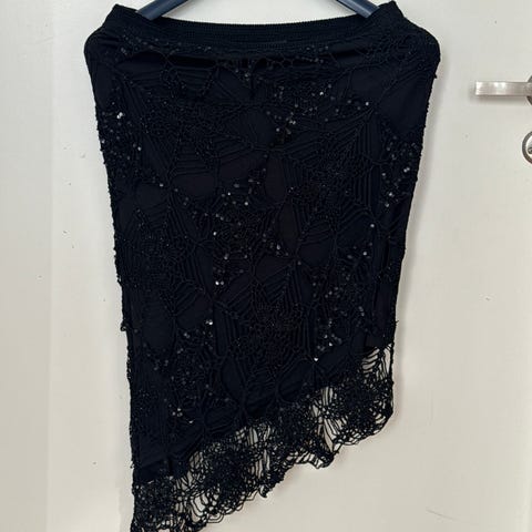 Pent brukt midi skjørt i sort farge,mønsteret og glitrende design.