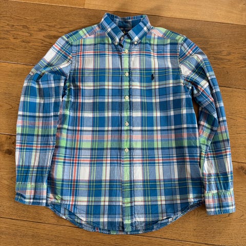 Selger en superfin pen rutete blå/hvit penskjorte , 14-16 år