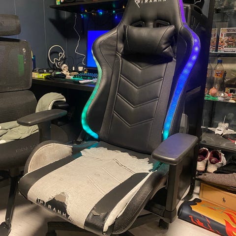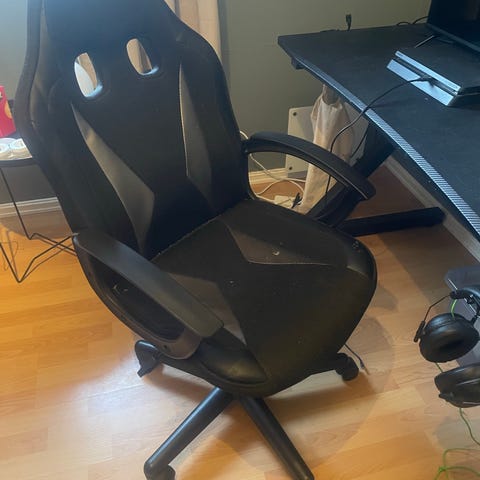Arozzi gamingstol i svart og hvit farge. Stolen har justerbare armlener og et design som passer for spillere. Materialet er syntetisk, med slitasje på overflaten som vist på bildene. Stolen kan nok brukes noen år til. Hamar