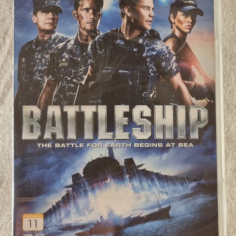 Battleship DVD med filmen "The Battle for Earth Begins at Sea". Aldersgrense 11 år