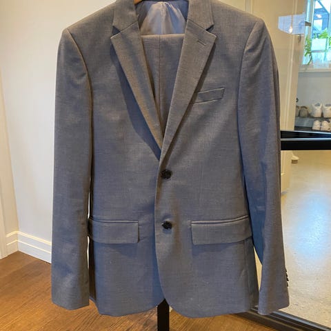 Dressjakken har to knapper og slim fit passform, og splitt på hver side bak.