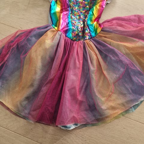 Barnekostyme jente str 116 i fine regnbuefarger.