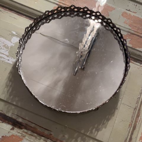 2 stk fine fat i metall med speil..Lengde 40 cm .Bredde12 cm .SELGES SAMLET