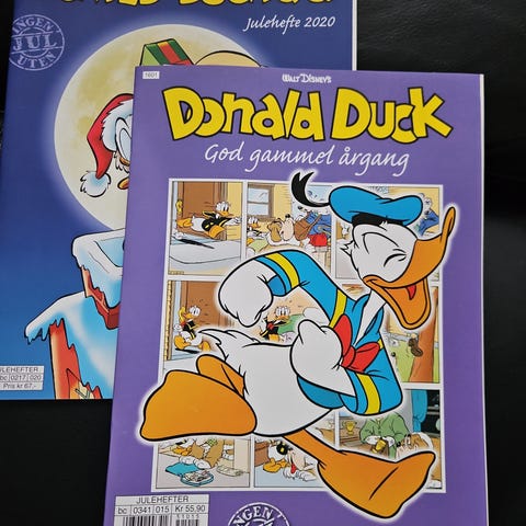 - Inneholder illustrasjoner av Donald Duck og andre figurer i julemiljø.
