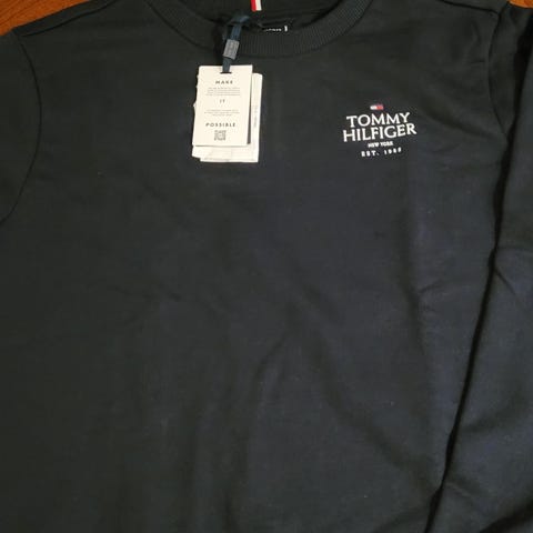Calvin klein genser i svart fløyel, størrelse 170, egnet for barn i unisex-størrelse. Genseren har hette og er laget av mykt fløyelsmateriale.