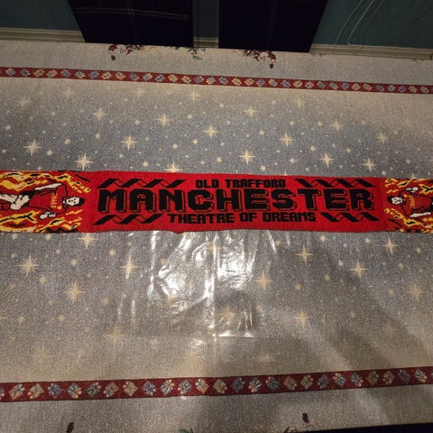 Rosenborg B.K.-supporterskjerf i svart og hvitt med logo og tekst. Usikker på årstall anslår ca. 1998–2008
