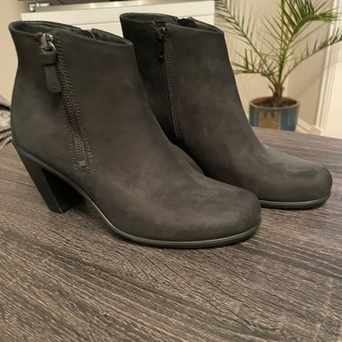 ECCO støvler i størrelse 40, brun farge. Støvlene har snøring og glidelås på siden for enkel påkledning. Innvendig fôr av mykt materiale. Yttersåle med godt grep. Egnet til hverdagsbruk i kaldere vær.