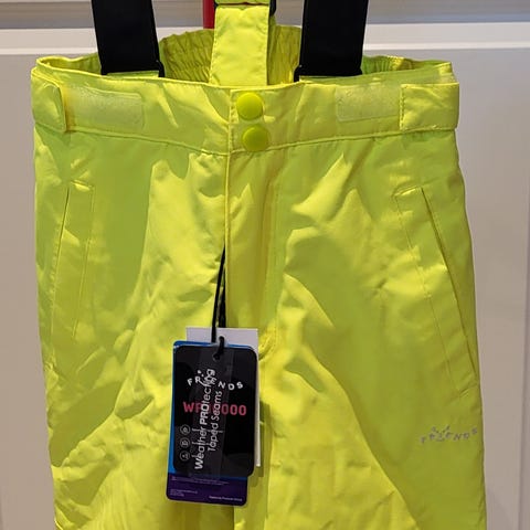 1: Gul bukse. 50kr. Størrelse 8 år. Neomondo. Synlig brukt, men mye bruk igjen.
