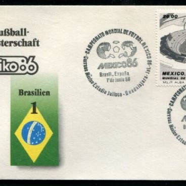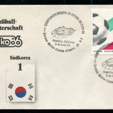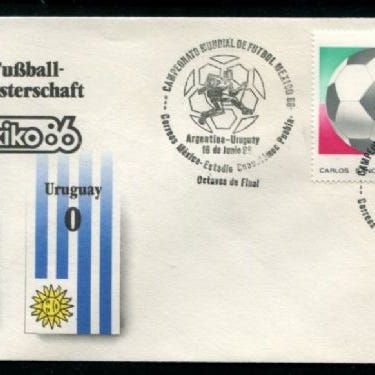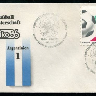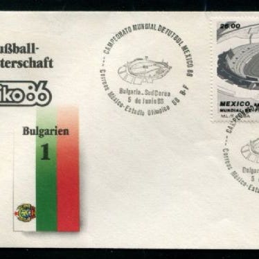 90% rabatt: Mexico 1986 VM i fotball Argentina-Bulgaria (Brev), kampdato 10.6. resultat 2-0. Frankert med VM-merke!