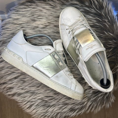 Skoene er ganske slitt på undersiden av sålen. Litt slitasje på den ene øverste hempen, det kan sendes bilde av ved ønske🤝
