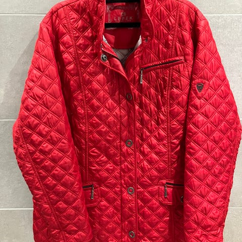 Jean Paul "oilskin" jakke i størrelse XL for dame. Jakken er grønn og har et rutete innerfôr. Kun brukt en gang.