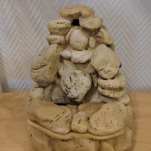 Masse forskjellige falske planter til akvarium, i tillegg til en falsk kokosnøtt.