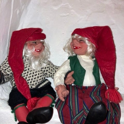 2 bilder av gips med Haslenisser. Bakplate i papp. Kommer i originaleske. Kan sendes mot at kjøper betaler frakt. Pakker godt.