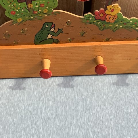 elger et dekorativt hornoppheng til vegg. Objektet består av to naturhorn festet til en midtseksjon med stofftrekk og metallbeslag. Det er også montert (i senere tid) øyeskruer for enkelt oppheng på vegg