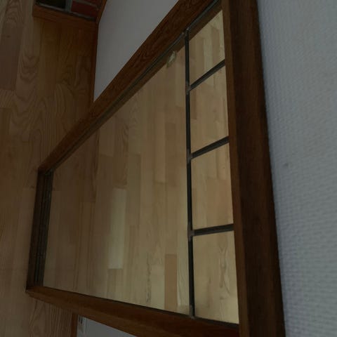 Noe normal bruksslitasje i ramme og lette merker i speilflaten, men fullt funksjonelt og klart til bruk.