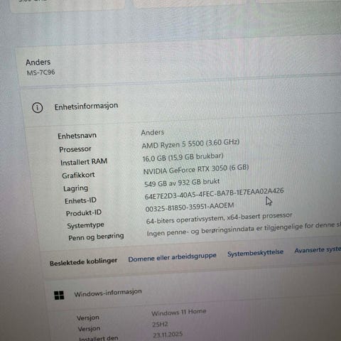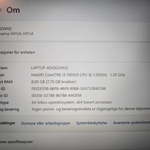 Systemtype: 64-biters operativsystem, x64-basert prosessor