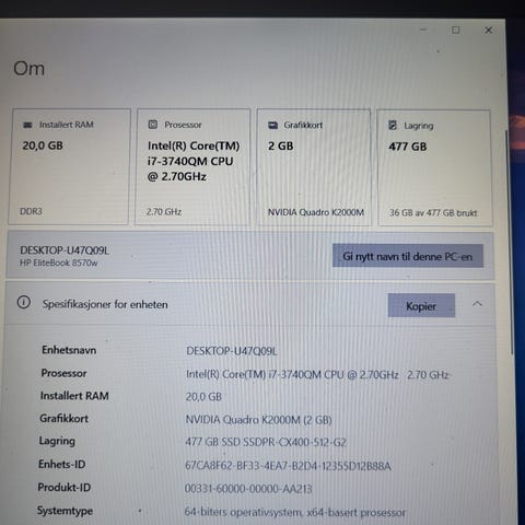 Prosessor (CPU): Intel(R) Core(TM) i7-3770 CPU 3,40 GHz