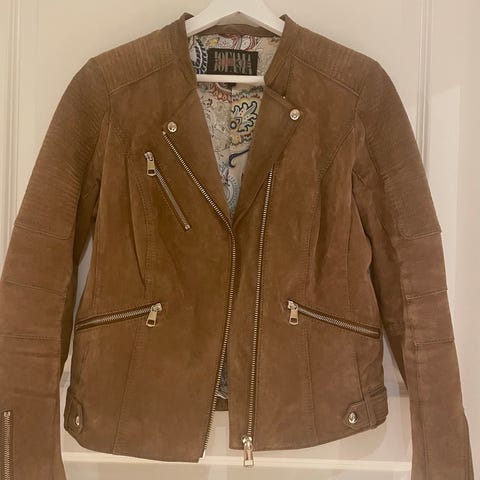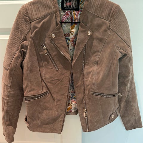 Råtøff skinnjakke fra Kristine Ullebø i størrelse 40. Kjøpt og aldri brukt.